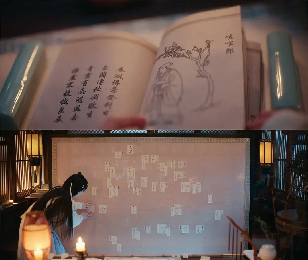 男主要射女主的耳环,都要说上两句《楼台会》;太子临死前看的是写建文帝的《千忠戮》;窦明的丈夫济宁侯画的竹子和梅花,真的都是不错的明代“文人画”。