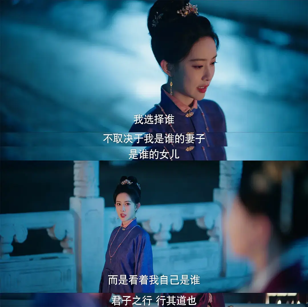 “我选择谁,不取决于我是谁的妻子,是谁的女儿。而是看着我自己是方便。君子之行,行其道也。”